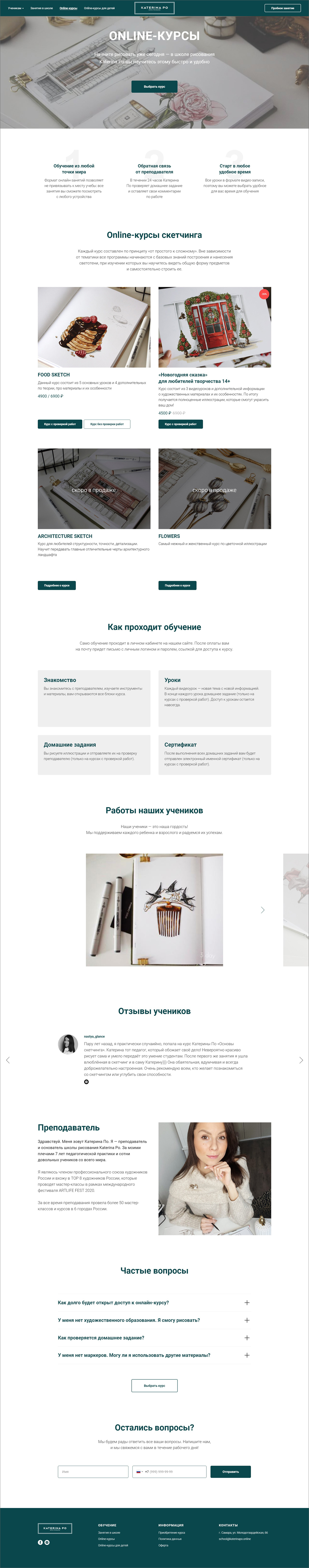 Школу рисования основала Катерина По, которая входит в ТОП 8 художников России, проводит мастер-классы во многих городах России. Проект выполнен на Tilda.
