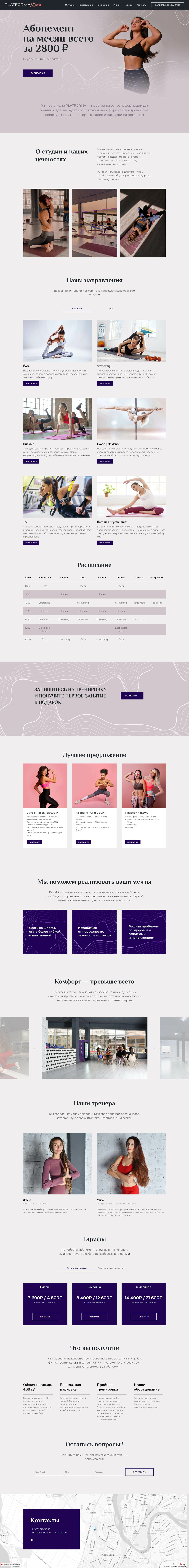 «Platforma Fitness» — это женская фитнес-студия, где проходят различные направления, такие как: йога, пилатес, barre fitness, pole dance и многие другие. Проект выполнен на Tilda.
