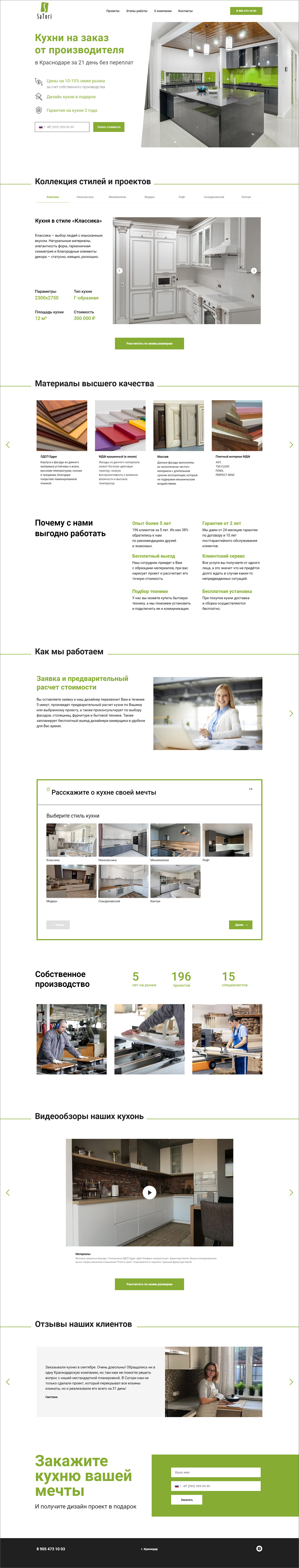 «SaTori» — строительная компания с собственным производством кухонь и мебели. Работают в Краснодаре и области. Проект выполнен на Tilda.